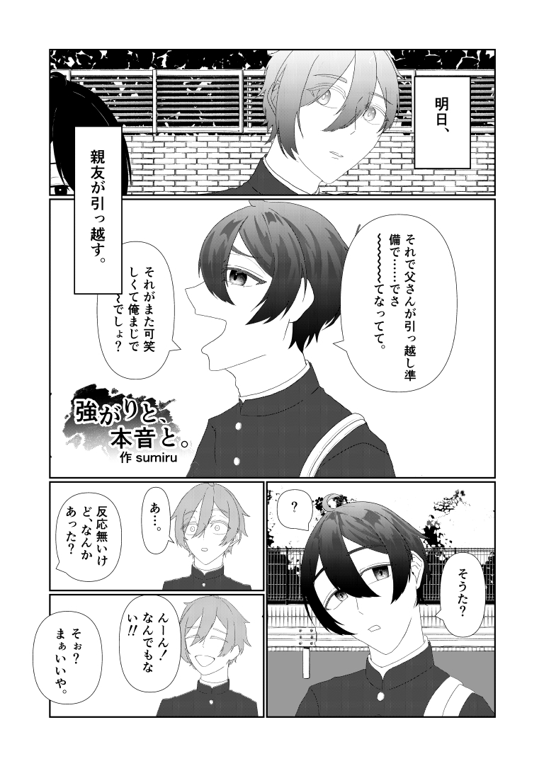 強がりと、本音と。[漫画] ハートウォーム X Facebook はてブ Pocket LINE Pinterest 2026.02.20 [作者コメント] 漫画描くの初心者です。読んでもらえると嬉しいです。 [作者名] sumiru [所属学校] 東京アニメーションカレッジ専門学校